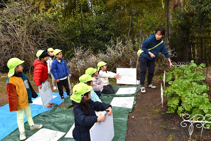 秋には年中クラスのブロッコリーに続き、生育中にある種の小さな幼虫に大根葉も食べられることがありましたが、冬になると無事に回復して立派な葉を広げています。さすが冬野菜の代表選手です🌿