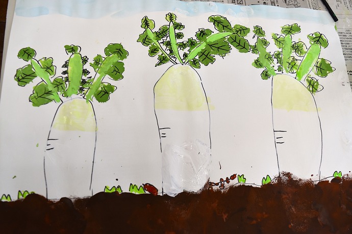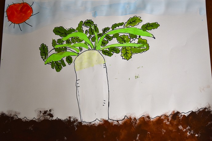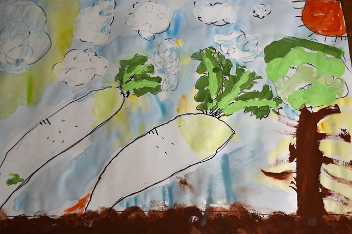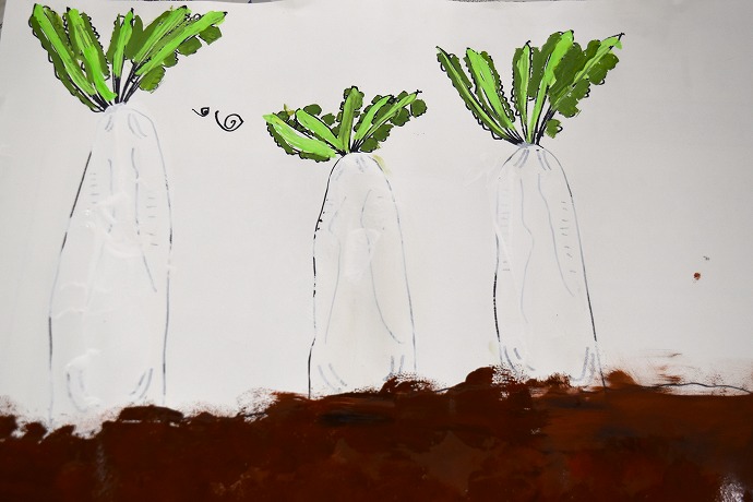 大きな大根を描きはじめました。
