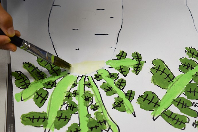 大根葉の筋を色付け。