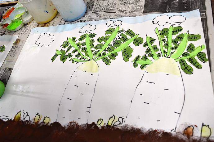 1/23(金)は大根の絵画の仕上げでした。
