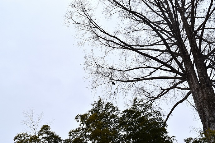 10時半前より再びひみつの庭に集った年長クラス。畑の手前に植わっている大根を指さして「あっ、なにかにかじられてる!」とみんな。見ると尖ったくちばしでかぶりついたような跡がついています。ふと目線を感じて真上を見上げるとカラスが一羽🐦…。