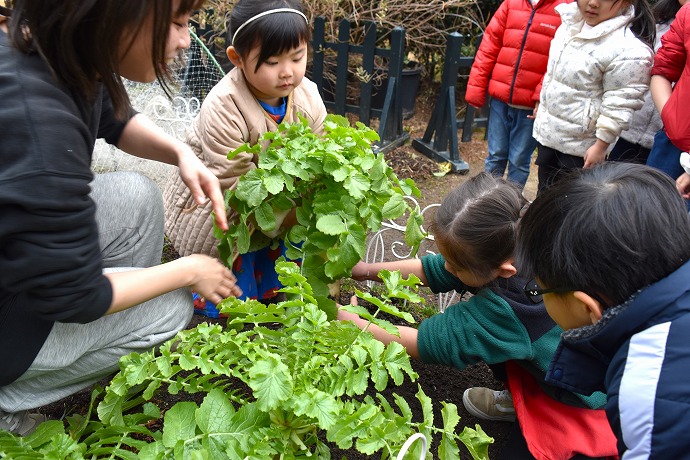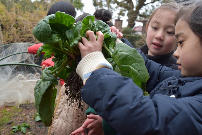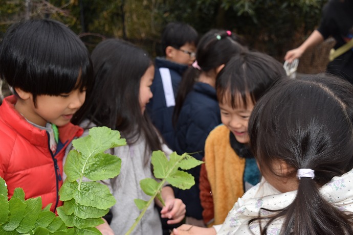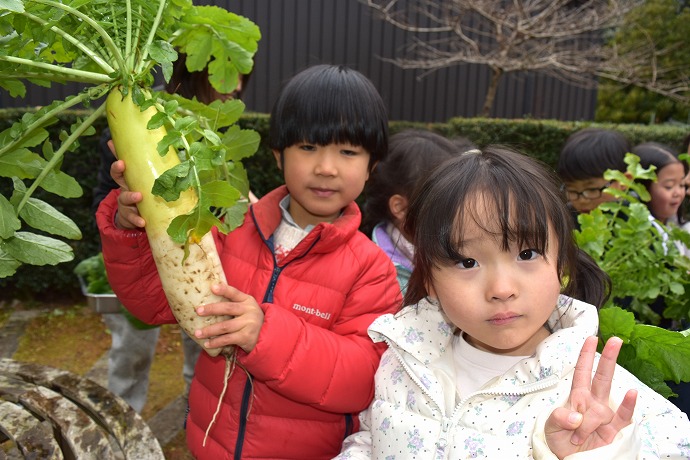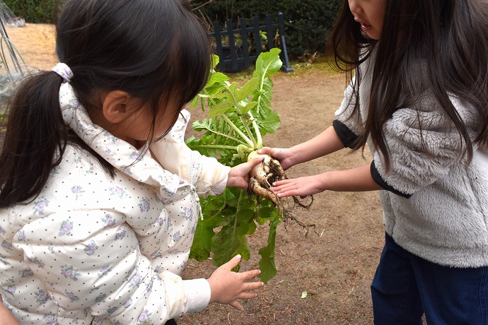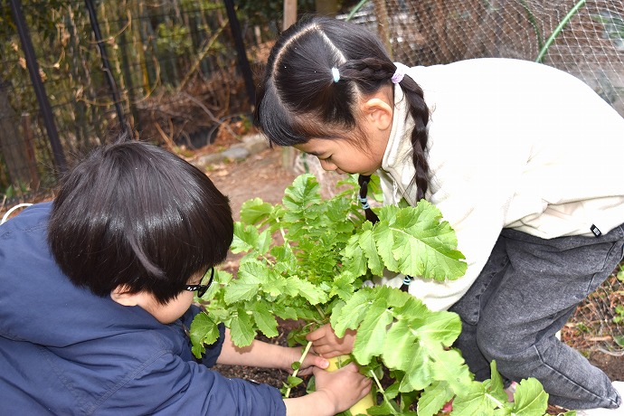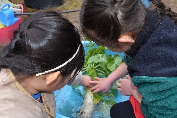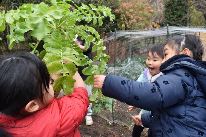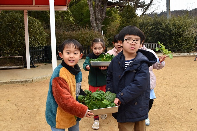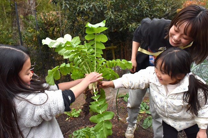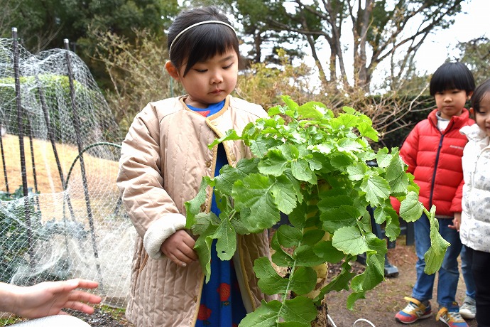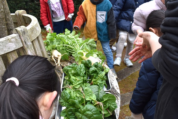 🌿🌿🌿👦🌿👧🌿大根&ちぢみほうれん草収穫~cooking🍲✨(年長クラス1/28(水)記録)