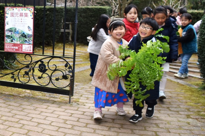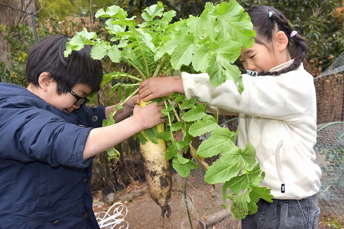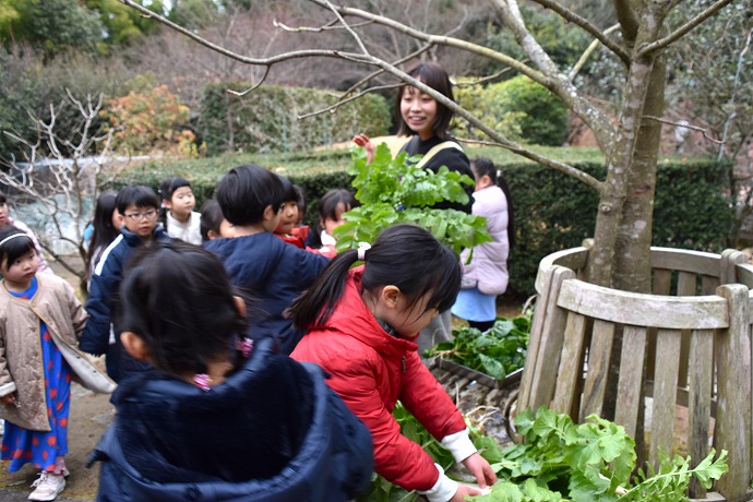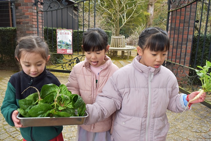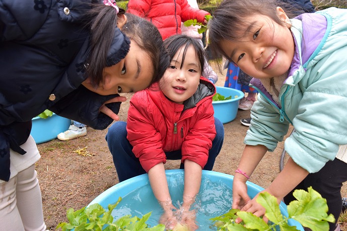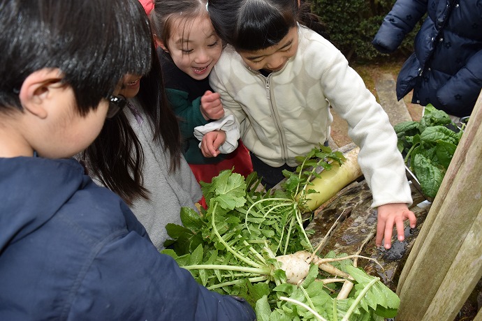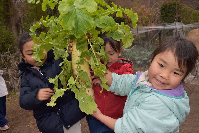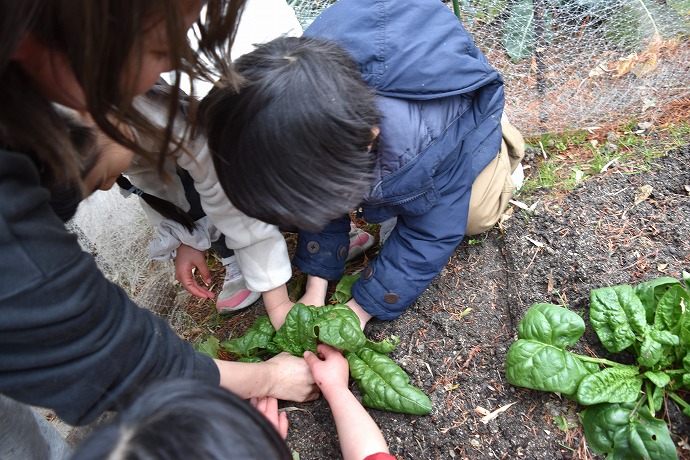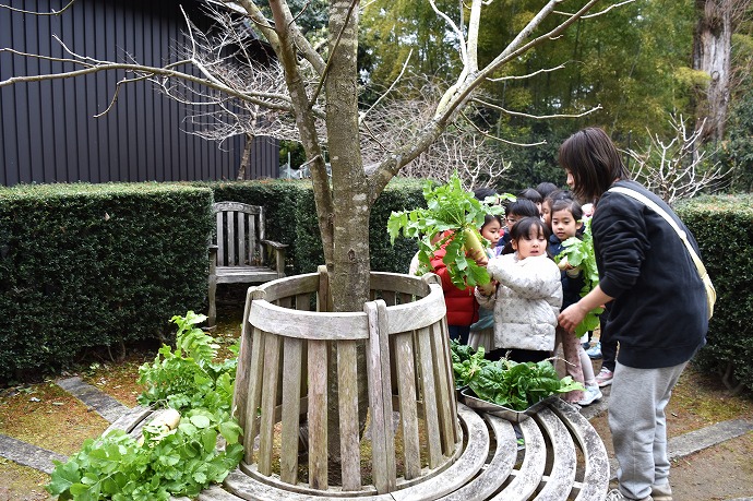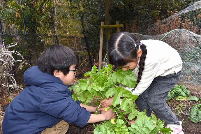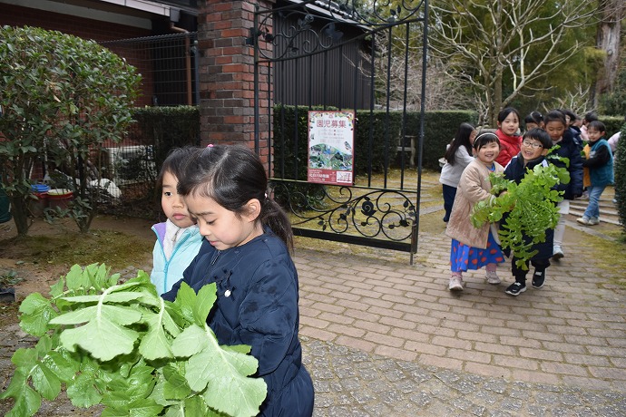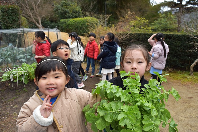 🌿🌿🌿👦🌿👧🌿大根&ちぢみほうれん草収穫~cooking🍲✨(年長クラス1/28(水)記録)