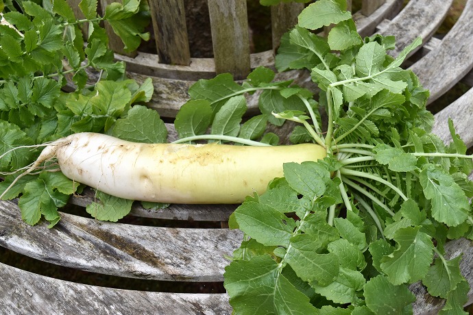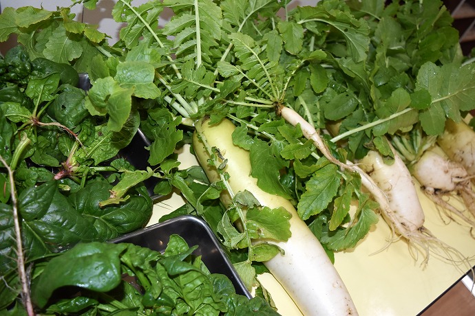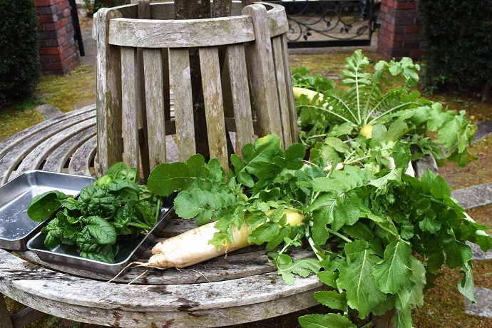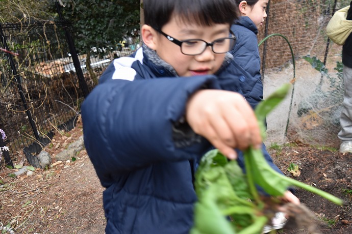 1月29日(木) / 🌿🌿🌿👦🌿👧🌿大根&ちぢみほうれん草収穫~cooking🍲🐓🌿✨(年長クラス1/28(水)記録)