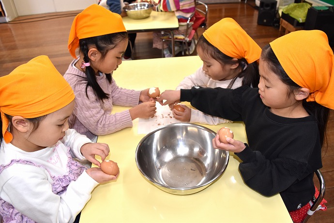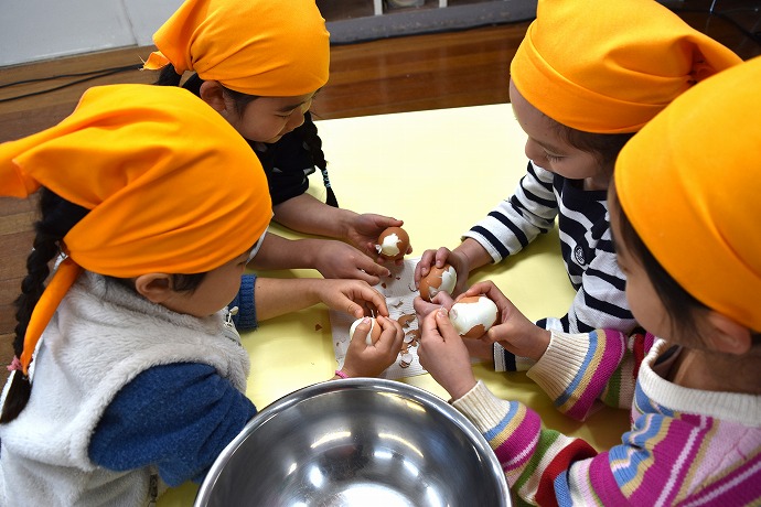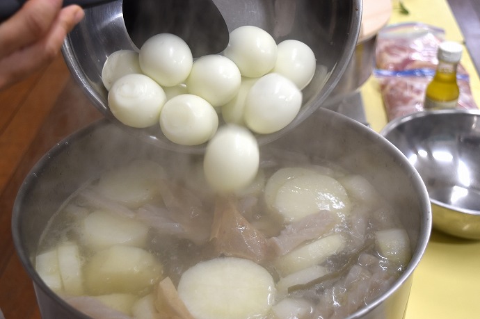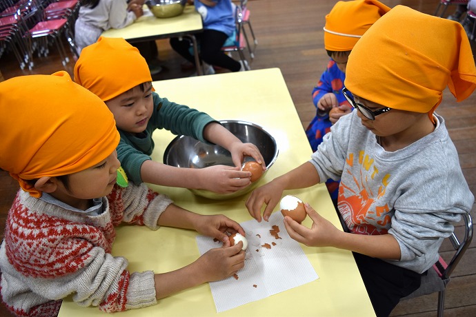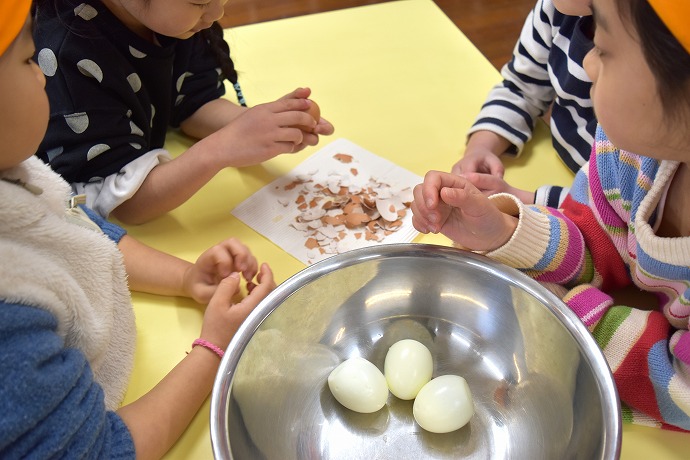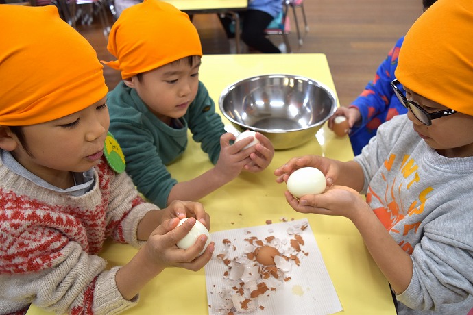 みんなの手でむき終えたゆで卵も投入~~🥚🥚 一人ひとつあります!