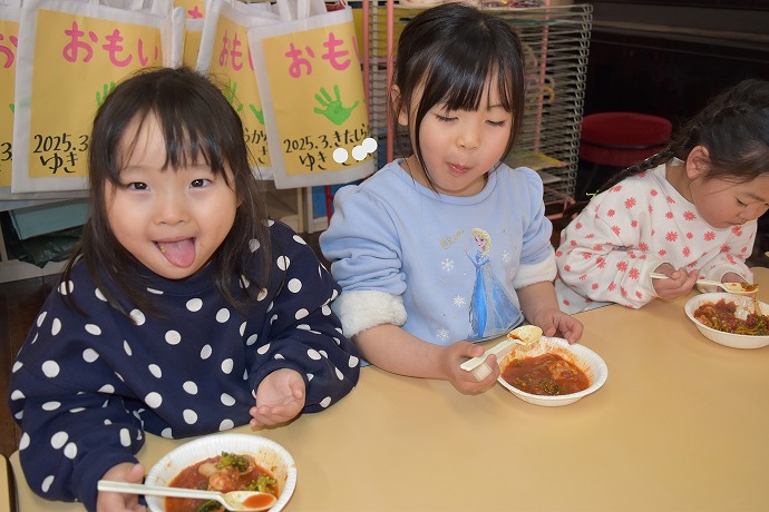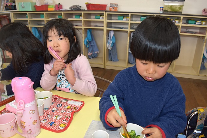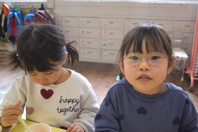 そしてこの日のお当番さん。「たんぽぽぐみです。おねがいします!」笑顔できてくれました。
