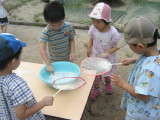 夏期保育では、しゃぼん玉とカプラで遊びました。