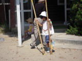 秋の陽差しの中をいつも通り遊んでいる子どもたちです。