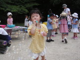 夏季保育2日目。思い思いにとんでいくしゃぼん玉を楽しみました。
