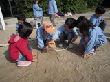 「もみじのはっぱと、たねをあつめてるんだよー」