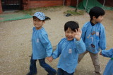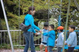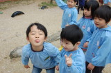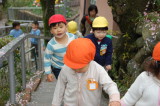 園庭めぐりのようすです。年少さんはきっとドキドキしていたと思います。それを エスコートする年中さんも、実は去年の自分たちがそうだったのですね。年長さんに いたっては、余裕の笑顔さえ見られます(^^)。みんな、そうやって大きくなっていくのですね。
