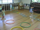 夏季保育2日目。今日は体育遊びを混ぜ合わせたスタンプラリーです。