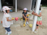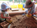 「みて、ミミズ、つかまえた!」