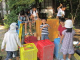 「はっぱのうえに実をのせるのが、けっこうむずかしいのよねー」