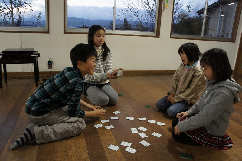 HiちゃんやKoちゃんは、今日の一首をとっかかりに、電子辞書のようなものを持参してきていたこともあって(やる気満々でした^^)、順調にレパートリーを増やしていました。Yu君の場合は、取るぞとるぞと張り切っていた札(「淡路島」)が残念、取れなかったので、逆にその悔しさを、他の「小倉山」や「きりぎりす」を覚えて取ることで解消していました。そうして「新たな得意札」を迎えているガッツが、Yu君らしいなあと思って感心しました。