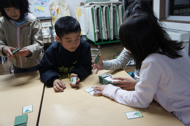 そのように「一首」と言って、実際にそれが「取れた!」となると、弾みがつくものです。かるたは、一度にすべての札を覚えようと「思わない」ことがコツだと思いますが、それでも自然な流れで、「次の得意札は何にしよう?」という意気込みが見られました。小学生たちの記憶力はすさまじいものがあって、ちょっとしたエピソードや覚えるきっかけを言うだけで、まるで絵か写真のように脳裏に焼き付くようです(羨ましいですね^^)。