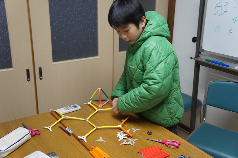 最後は「サッカーボールを作りたい!」(「正5角形と正6角形を何枚組み合わせれば多面体が構成できるか?」)という問題を一緒に考える所で終わりました。