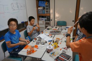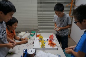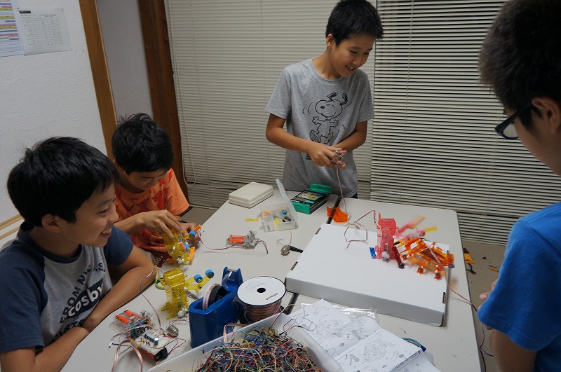 Y君が「これ使っていい?」と、ユニバーサルアームの切れ端を使って、足を倒れにくくしていました。またそれを見たT君が、手に剣のように取りつけてパンチ力を増していました。そうした「あ、それいいな!」が、さりげなくみんなの心に火をつけてくれるといいなと思います。自分で工夫をすることは、私も大歓迎です。