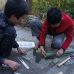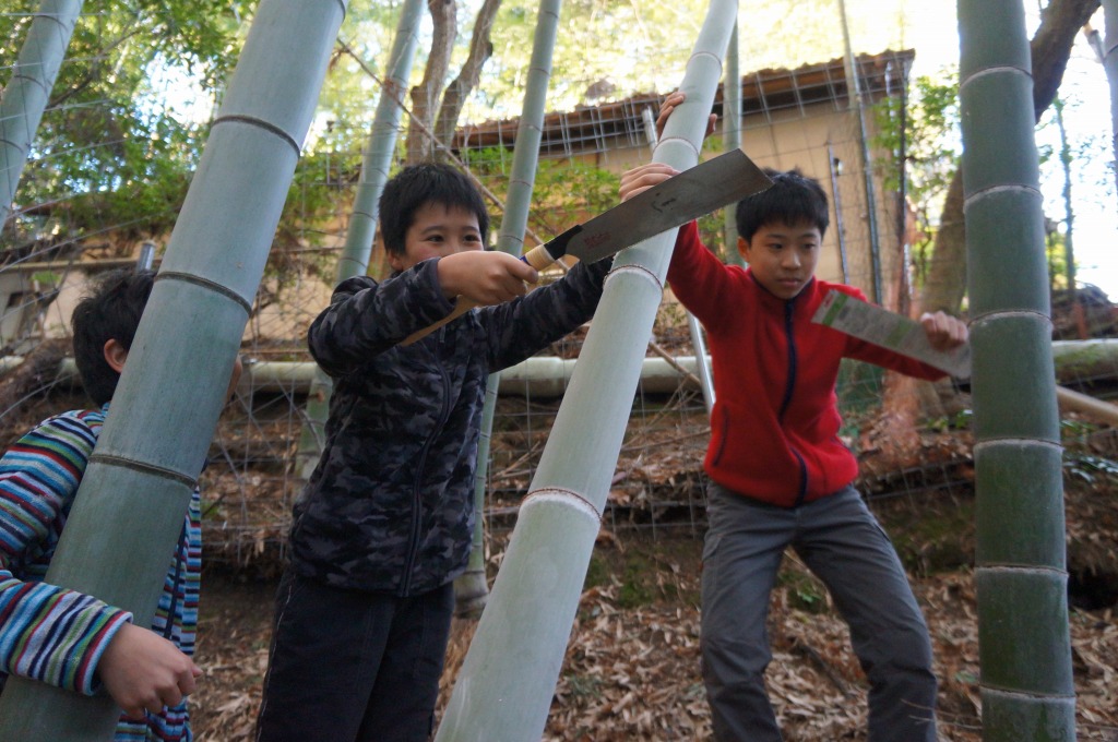 福西です。今日は「竹トンボ」を、竹を切り出すところから作りました。