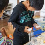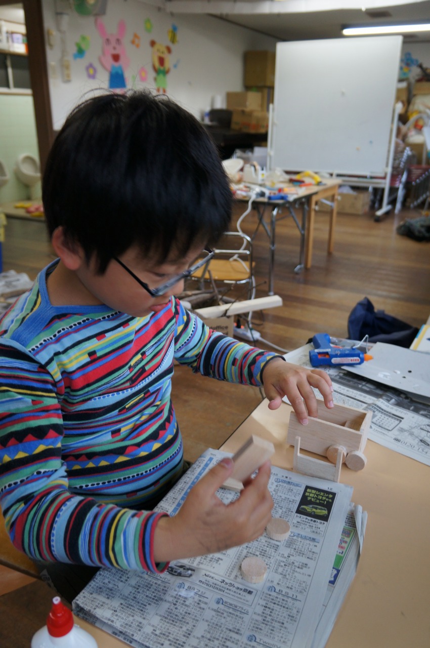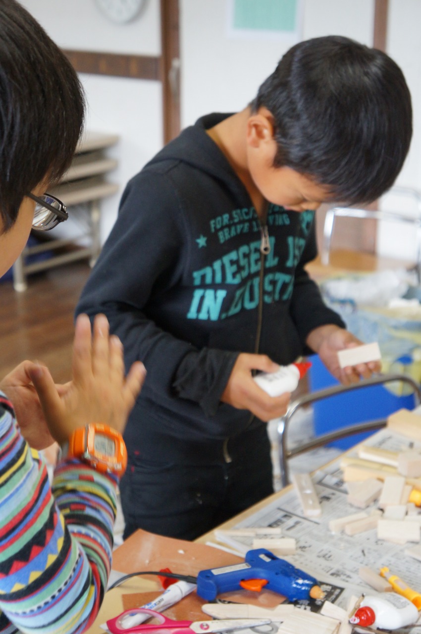 福西です。この日は木材のパーツを使って、好きな形を作ってもらいました。