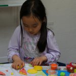 福西です。今日もいろいろなものを作りました。主に男の子は空き箱工作が中心で、女の子は米粉ねんどでクッキングを楽しみました。