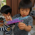 特に道具に対する興味が強いのは男の子たちで、一通り全部を試してみたいようです。一見カッターで済みそうなところにのこぎりを使ってみたり、はさみで切れそうな発泡スチロールの容器をわざわざスチレンカッターで切ってみたり。何をどんな時に使うとどうなふうな効果が得られるのか、その最初の経験をしているようでした。