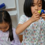 米粉ねんどの女の子チームも、型を使ってきれいな丸や三角をくりぬき、はじめてとは思えないほど素敵なものを作っていました。