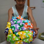つくる5~6年(2016/5/23) 公開日:2016/05/24 つくる 福西です。前回のユニット折り(120枚組)を完成させました。 三角の部分が240面。できた時は壮観でした。 また早く来ていたY君は、ドラゴンを作りました。 ドラゴン、完成。 T君が来たので、ユニット折り再開。 一つの「星」のまわりに五つの星を合わせて、それを半球とします。 半球できあがり。 こちらも半球できあがり。 半球と半球を合体。 のり付けに一番苦労しましたね。 最後の一枚ののり付け。 完成。 「出来たー!」 関連記事 つくる1~2年(2017/3/2)つくる5~6年(2015/4/20)ひねもす(2021/6/29)つくるB(0421)つくる3~4年(2016/12/12) 投稿ナビゲーション つくる2~3年B(2016/5/19)つくる1年(2016/5/26)