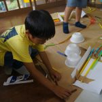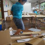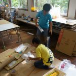 コースができてから、みんなで試合をしました。「何打でゴールに行くか」というルールです。3回ずつチャレンジして、S君は5打が最高点、N君は4打が最高点でした。というわけで、N君が優勝でした。