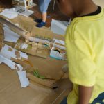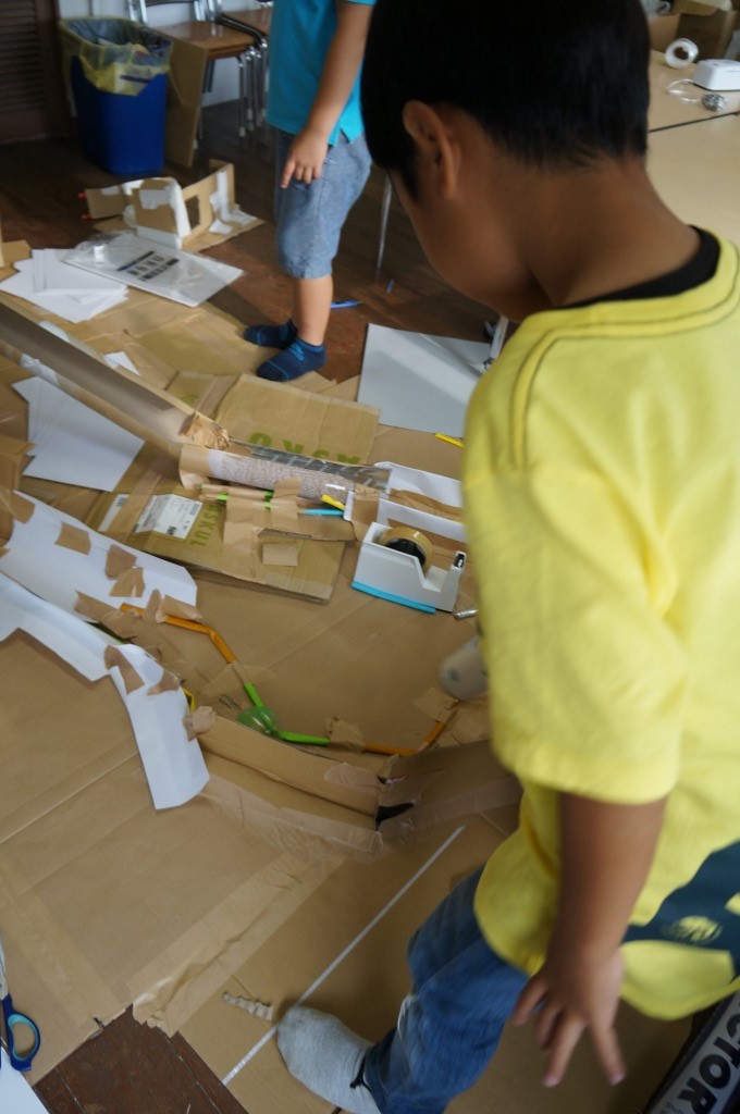 またコースからはみ出しやすいところは、ダンボールやボール紙の壁を両側に立てて道を作りました。