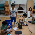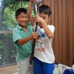 S君は次にペットボトルの三段ロケット、A君は弓を2種類、E君はスライダーに段差をつけるための土台を作っていました。また、R君は前回の経験を生かして、コースを長くし、途中ビー玉が空中でジャンプするようにしていました。それぞれの生徒が、1学期の時よりも自分の作業に対する自信を持っているように感じました。
