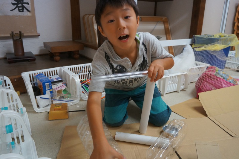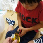 「ちょっとやらせて」(ビー玉を筒の中に通しているところ)