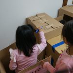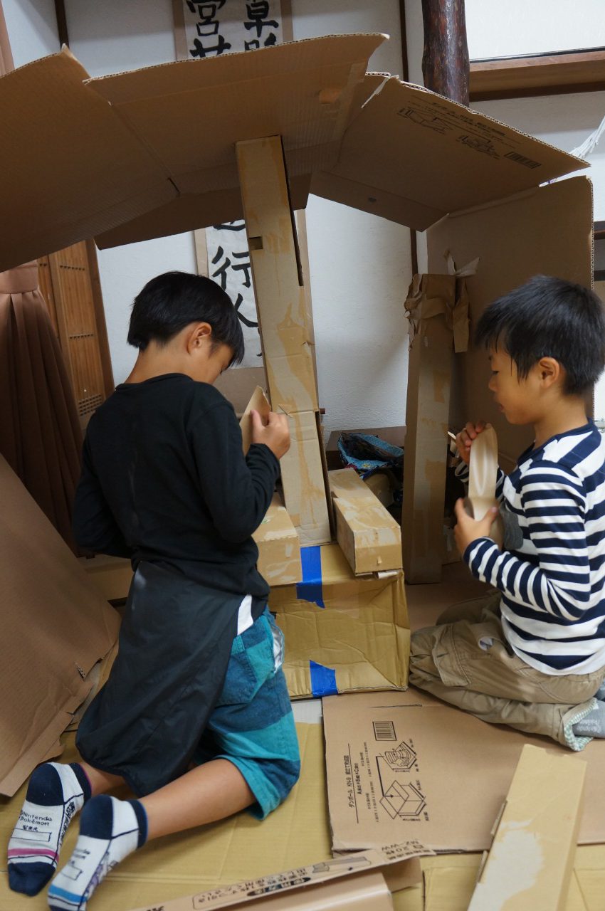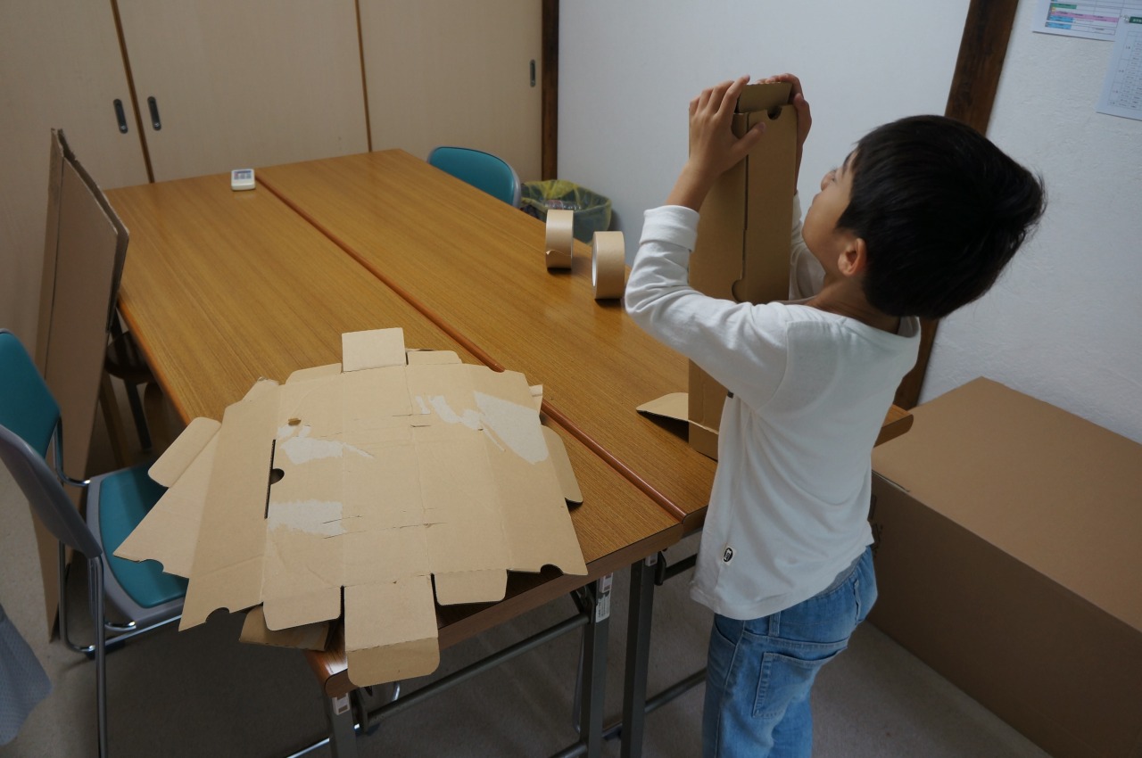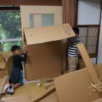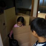 「テント」と「お家」は、せっかく作ったのですが、次に教室を明け渡す必要があるので、みんなで片づけました。すると帰り際に、