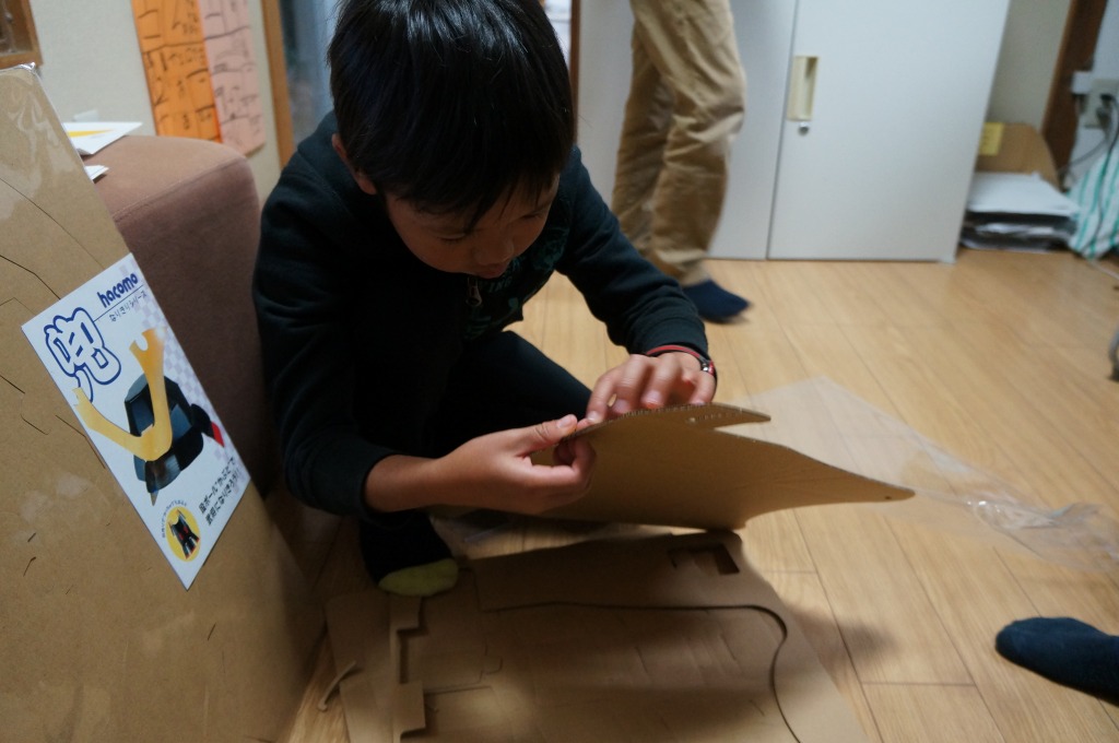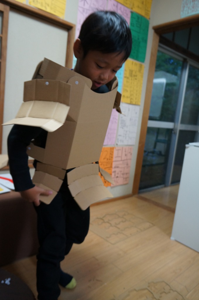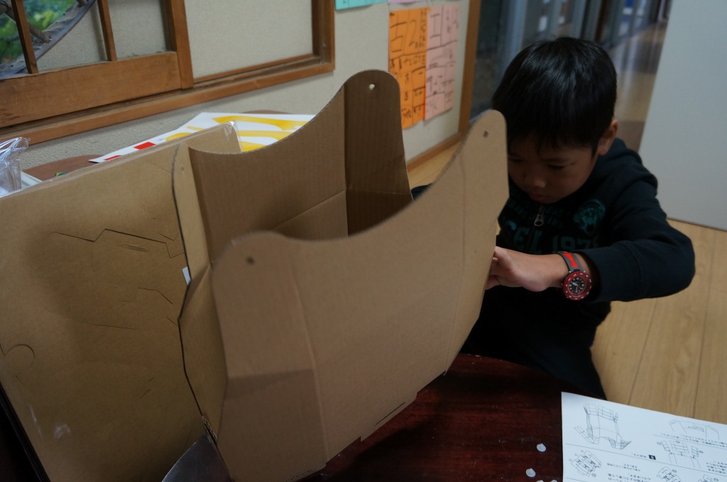 その結果、胴回りの部分には、ダンボールの箱をそのまま使わず、板を二枚貼り合わせる方がよさそうだと分かりました。