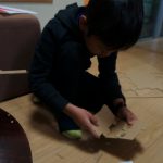 後半は「刀」を作りました。木の棒を柄にして、鍔をつけました。刀身はダンボールを細く折って作りました。反身をつけるのが今後の課題です。