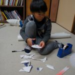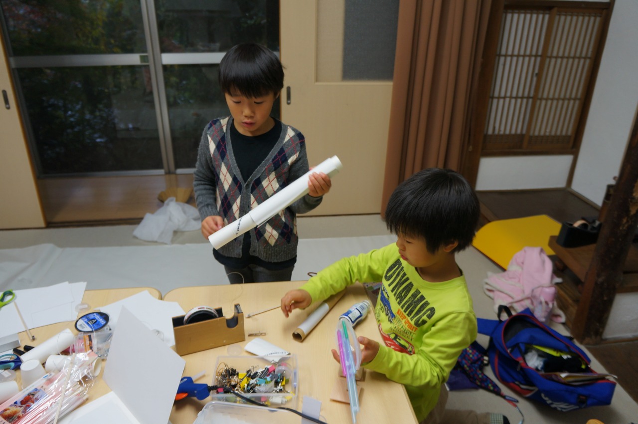 今回は動くおもちゃか自由工作ということで、取り組んでもらいました。結果的に厚紙を作った工作が流行っていました。