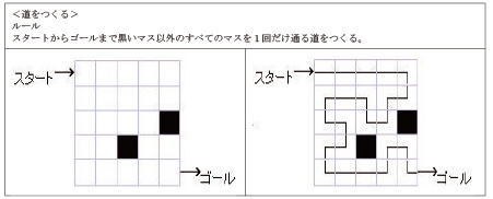 かず5〜6年クラスで取り組んだ2種類のパズルがちょうどよい例を提供してくれます。アルゴリズムが適した「道をつくる」というパズルと、ヒューリスティックが適した「ナンバーリンク」というパズルです。