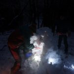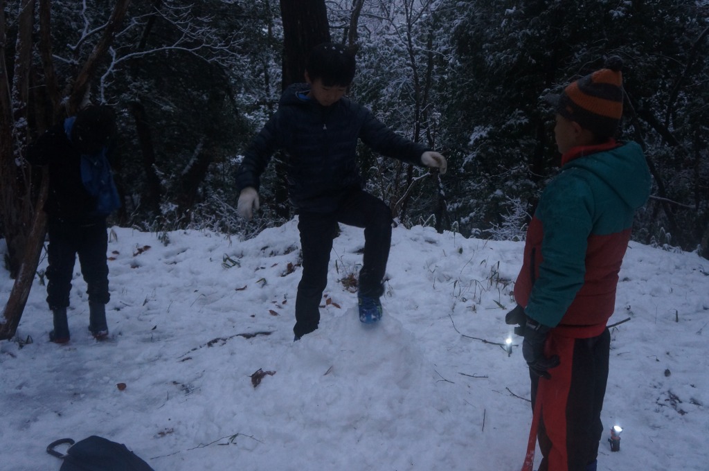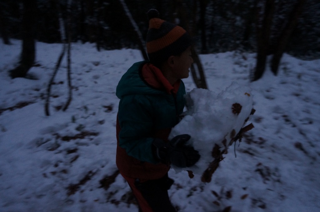 森の中は以外と雪の層が薄くて、最初は集めるのに苦労しました。
