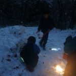 まだもっと中を広くしたい(上に高くしたい)と言っていましたが、暗くなってきたところでやむを得ず引き上げました。ランプがたぶんに雪祭のような幻想的なムードをかもし出していました。