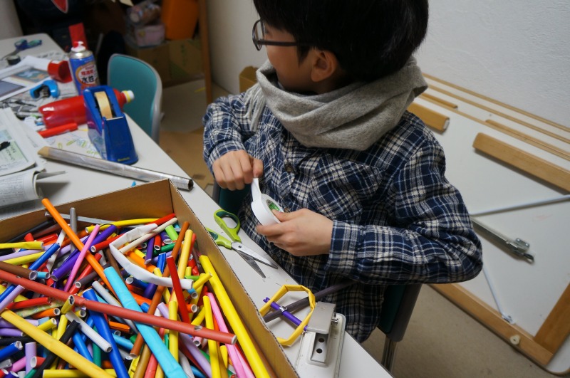 Y君が手裏剣に紐をつけるアイデアを出していました。それが「おれもやろう!」となって、はやりました。
