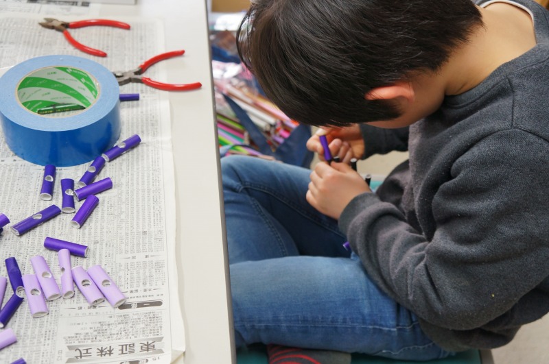 Kちゃんについては、大きなボビンだとどうしても糸が固くなって指が痛そうでしたので、径の小さいボビンに取り替えてもらいました。そうすると糸が固くならず、「どんどん長くなっていく!」と作業を楽に感じてもらえていました。