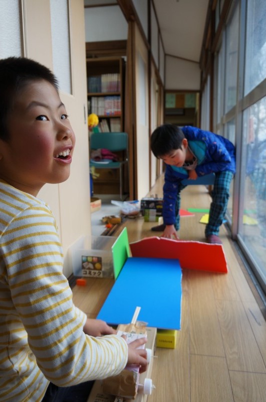 その後、Ryo君と一緒に、「(耐久試験)コース」を作って何度もその上を走らせていました。Ryo君が新しい面白いコースを次々と考案していき、二人して大盛り上がりでした。
