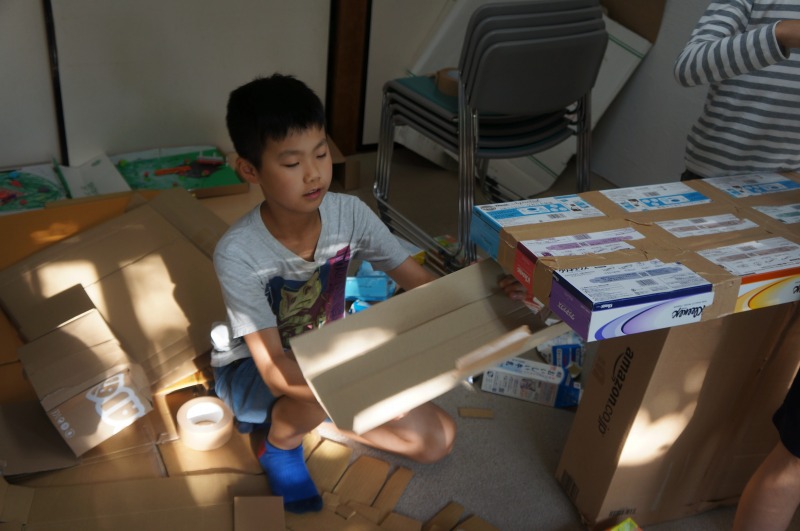 つくる4~6年(2017/5/22) 公開日:2017/05/22 つくる 福西です。 今日はビー玉用のすべり台を作りました。ダンボールの基礎と、同一の部材を準備する所から始めました。 ゴールの所に穴の開いたお碗を置き、玉がくるくるっと回ってスポンと落ちました。 関連記事 ひねもす(つくる4~6年)2020/1/20つくるA(12/16)つくる3年・4~6年(2018/3/12)つくる3~4年(2018/4/9)ひねもす(2021/5/17) 投稿ナビゲーション つくる (1~2年) 2017年5月11日つくる4~6年(2017/6/5)