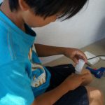 懐中電灯では、フィルムケースがちょうど単2電池と同じ大きさで、電池ホルダーになりそうです。C君がそれを思いつきました。