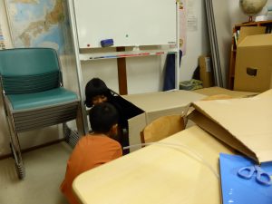 5~8枚目 男子グループは、まずは車を走らせるコースを段ボールで作りました。