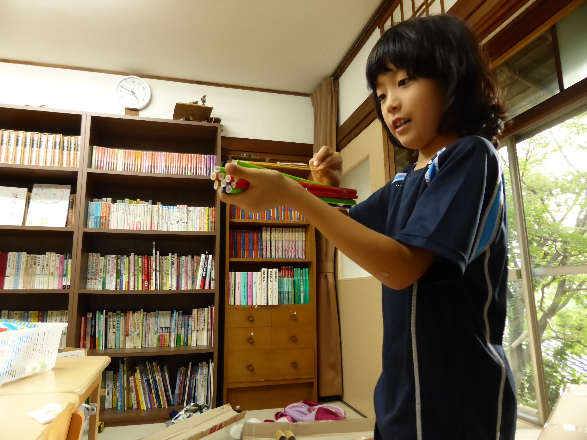 10日以上前になりますが、秋学期の初回は山の学校にあった材料を用いて工作を行いました。