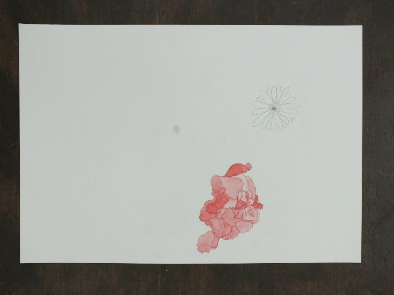 散りばめておいた生花や林檎のモチーフから色を再現したり、逆にパレットの上でできた色から何かを想起したり、ということが起こりました。