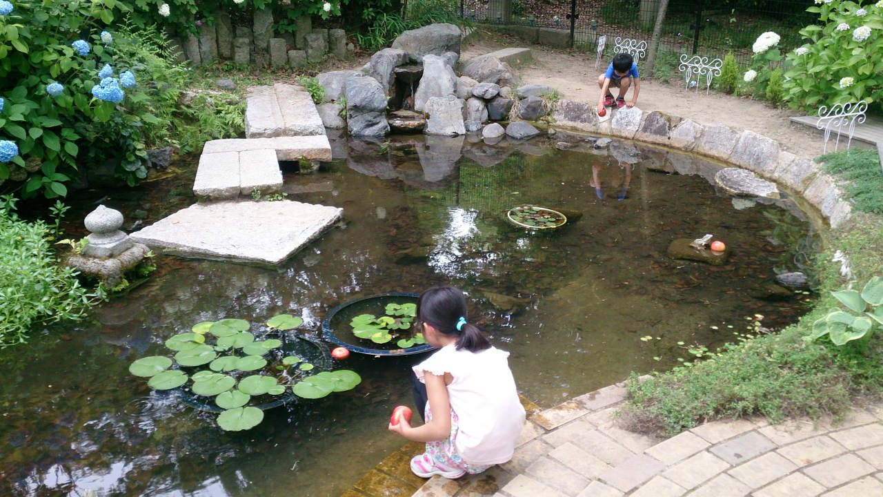 そのあと、池に浮かべてみたり、池のほとりに佇ませてみたりして、林檎を描いていた時です。