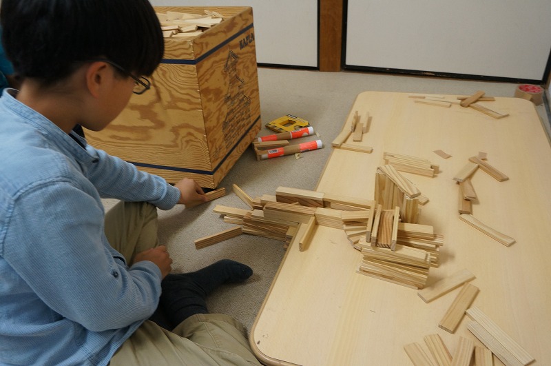 今日はカプラを用意しました。Ryo君はバベルの塔、To君はピタゴラスイッチに取り組みました。