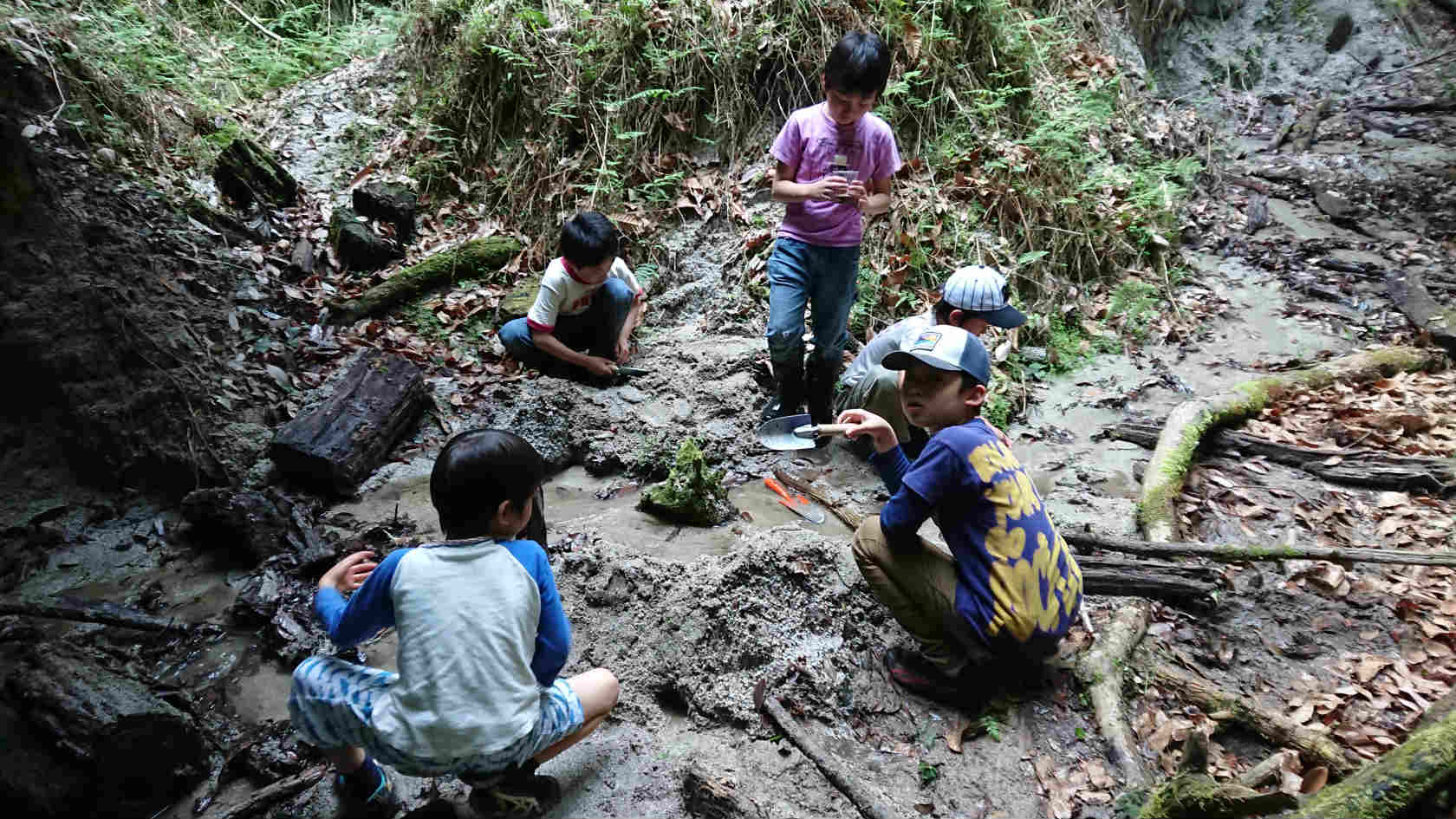 さて、沢に着くといつものように「蟹の家」の様子を確認し、沢蟹探しが始まりました。